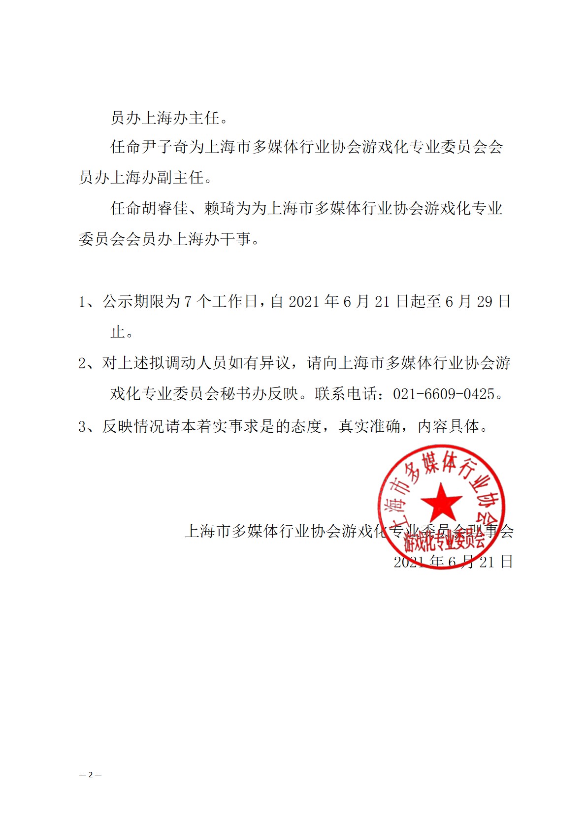 上海市多媒体行业协会游戏化专业委员会拟委任会员办的公示